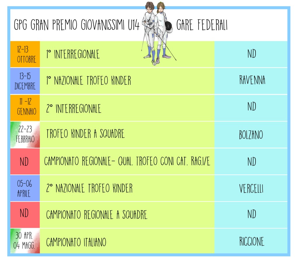 Le tabelle vanno considerate come indicative, mostrano la data, la tipologia e la città e non sostituiscono i comunicati ufficiali, con tutte le informazioni complete, che potete trovare nella sezione “Comunicati gare“. (Clicca e segui il link!)